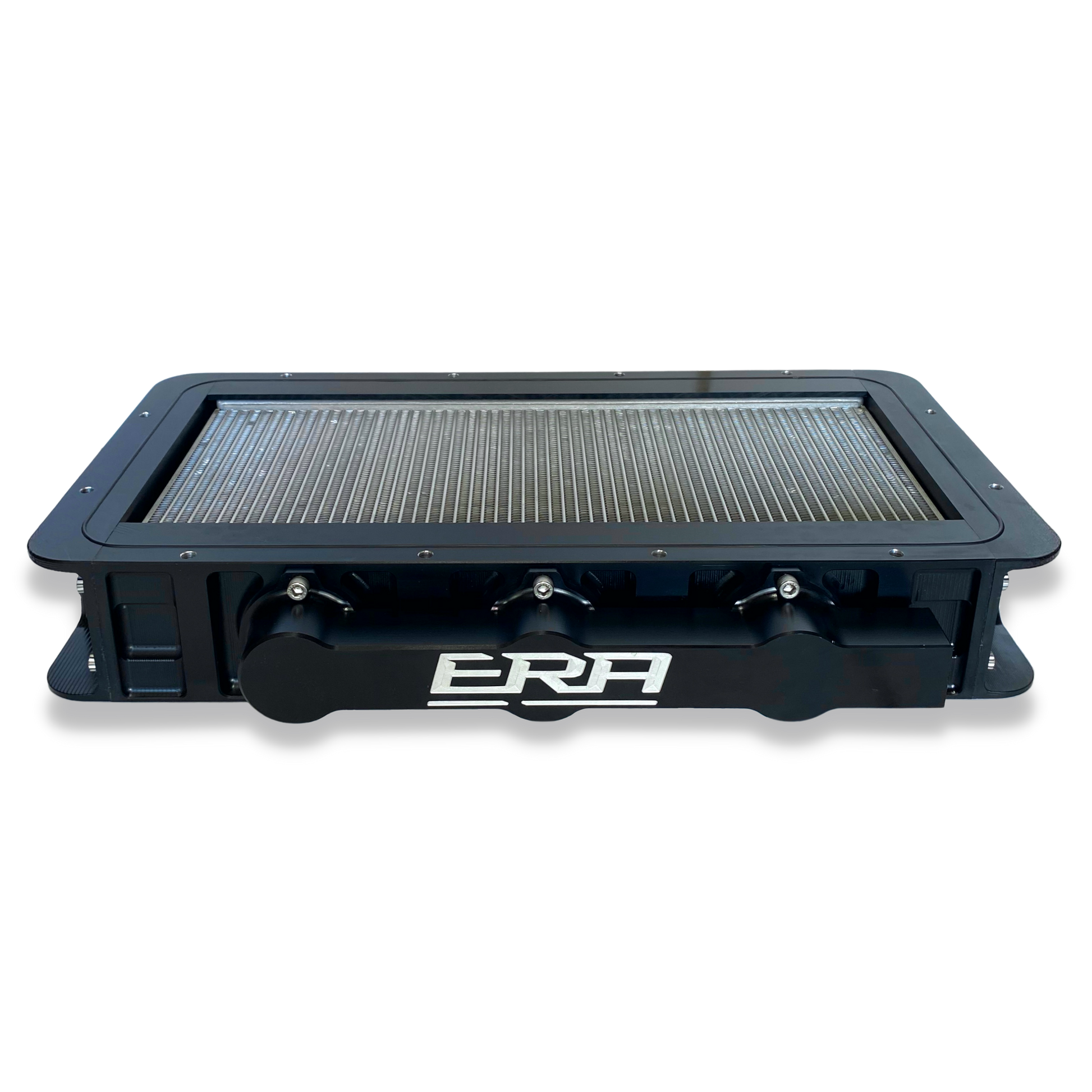 The ERA Water to Air intercooler is the best alternative to your conventional Air to Air intercooler which is bolted between the manifold and top cover of the Holley Hi & Low-Ram Manifolds.