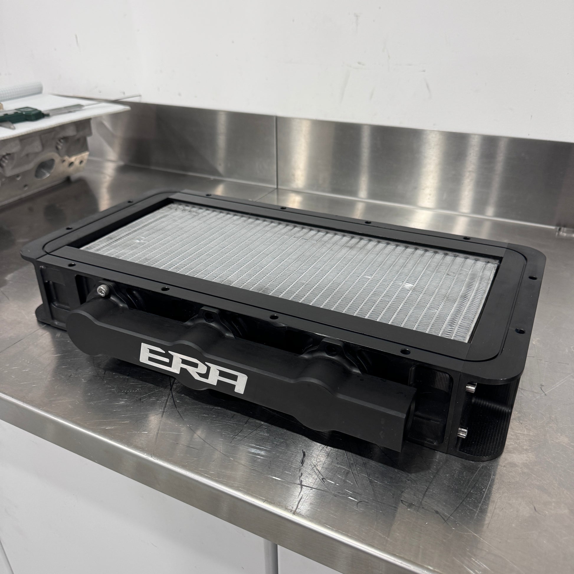 The ERA Water to Air intercooler is the best alternative to your conventional Air to Air intercooler which is bolted between the manifold and top cover of the Holley Hi & Low-Ram Manifolds.